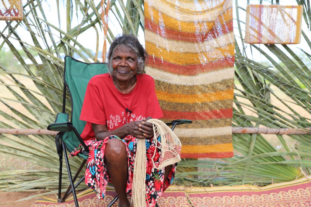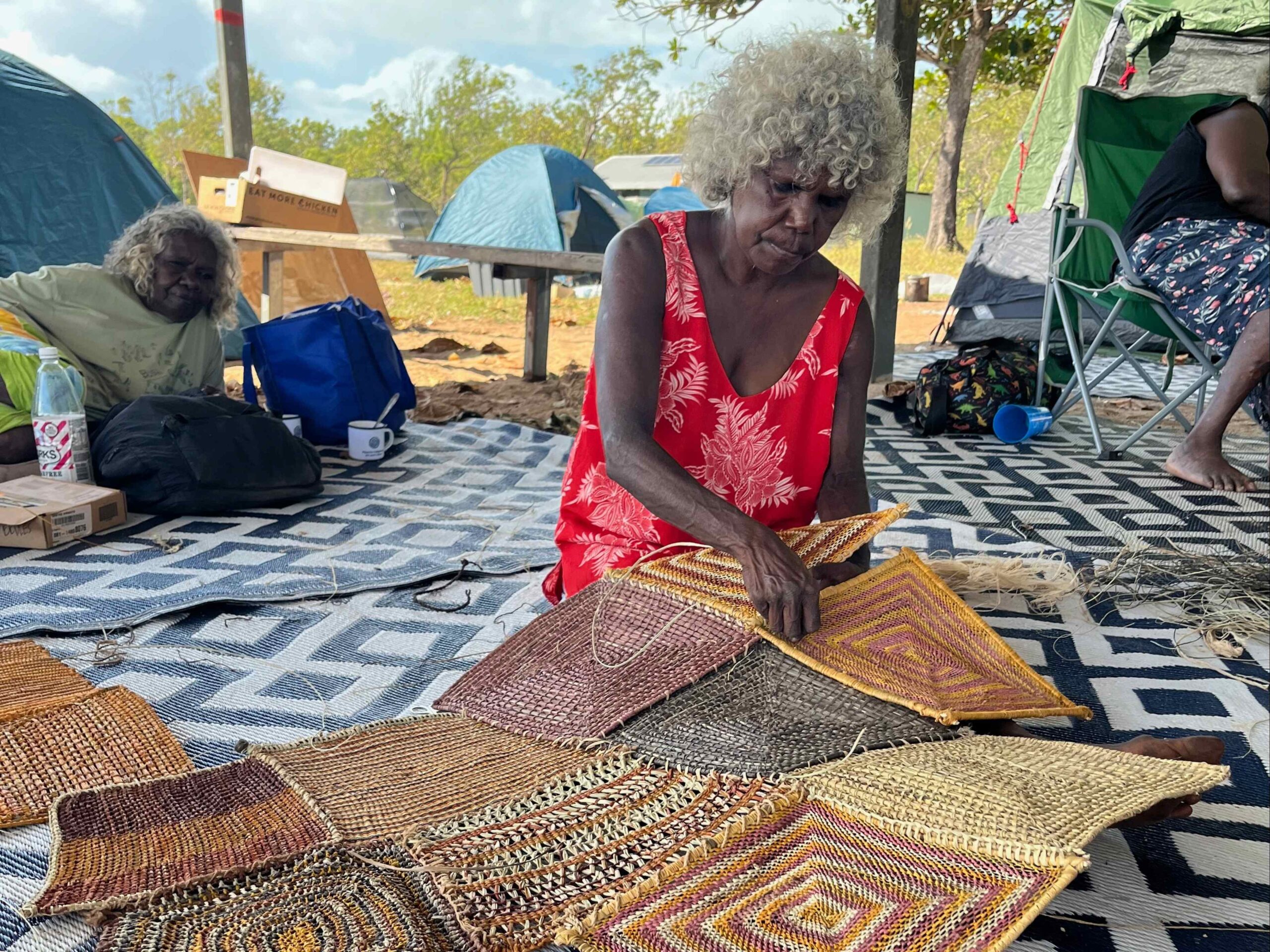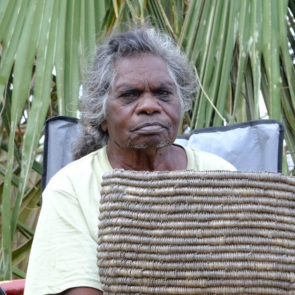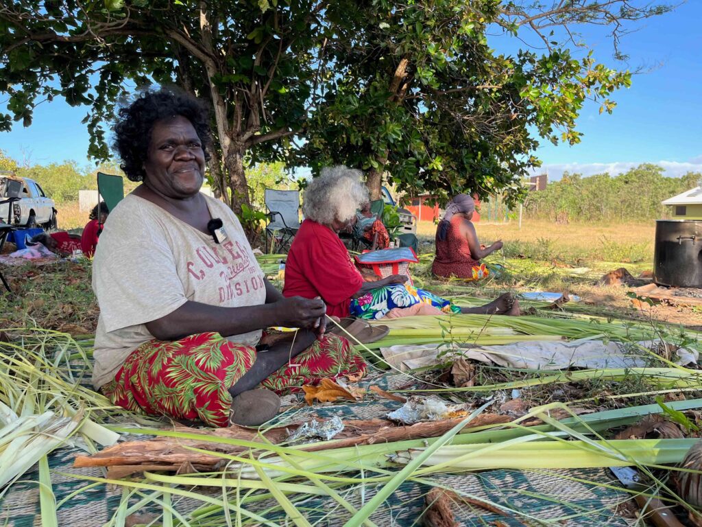 Margaret Wulngurrwulngurr was invited to attend the weaving camp following discussions with senior weavers, who carefully selected her to take part. Her participation reflects the trust placed in her skills, commitment and willingness to work alongside others on Country. Being chosen in this way is an acknowledgement of her role within the weaving community and the importance of bringing together the right people to share knowledge, support one another and strengthen weaving practice across generations.