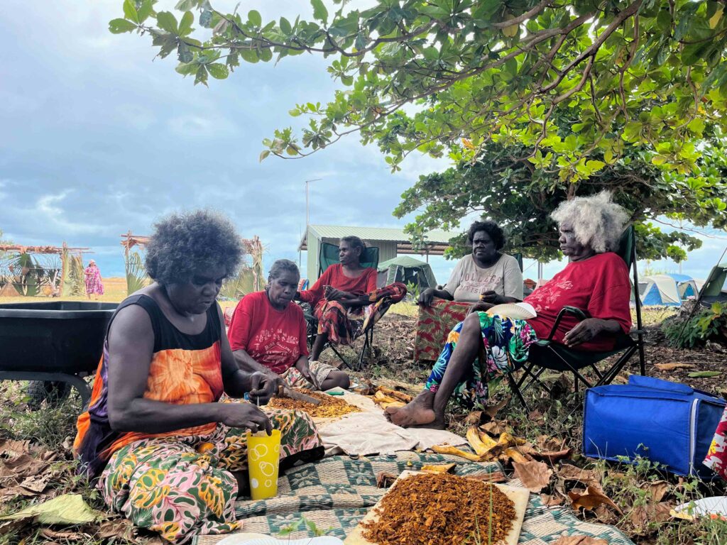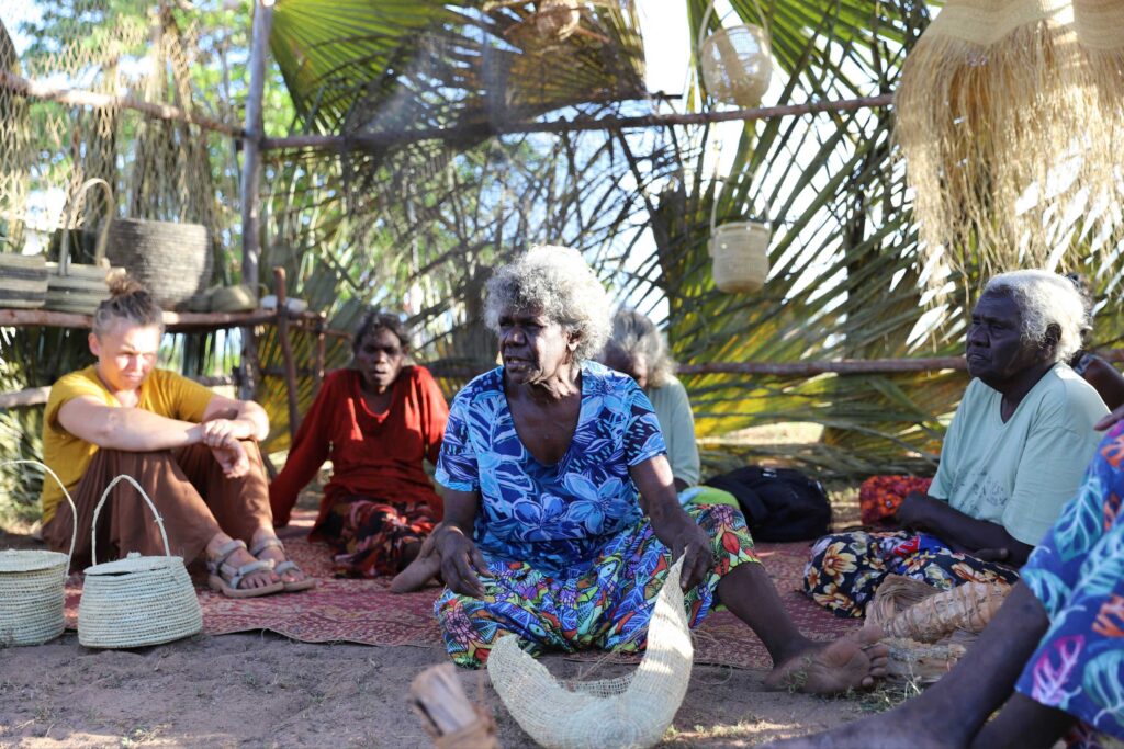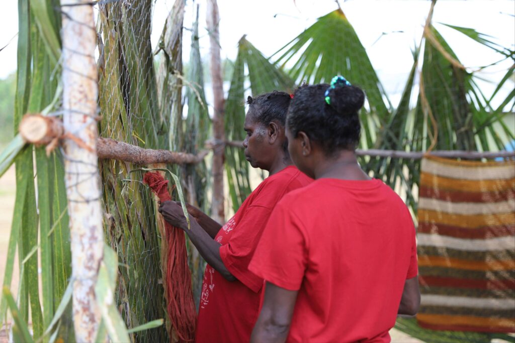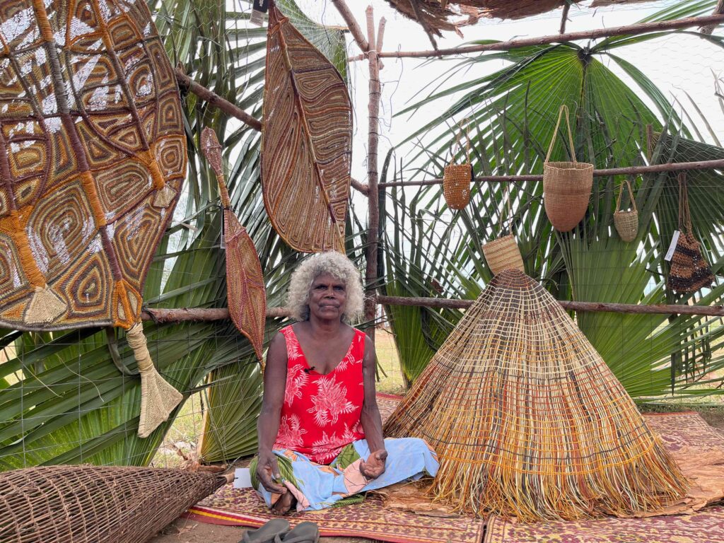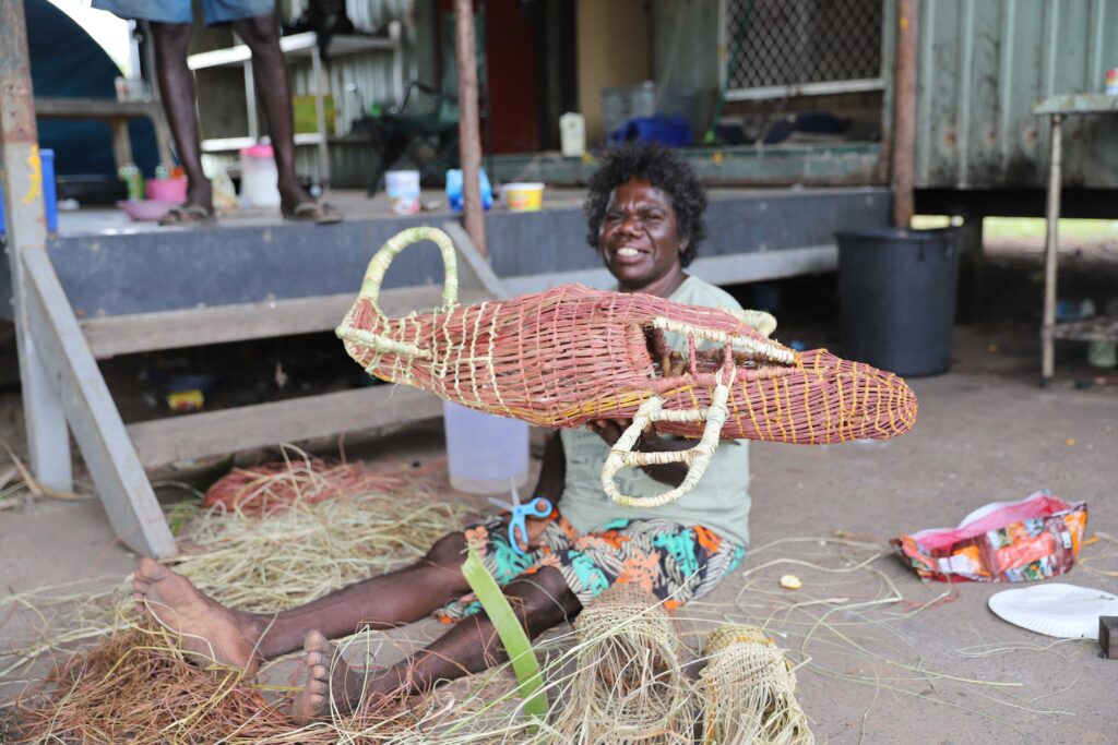 Margaret Wulngurrwulngurr was invited to attend the weaving camp following discussions with senior weavers, who carefully selected her to take part. Her participation reflects the trust placed in her skills, commitment and willingness to work alongside others on Country. Being chosen in this way is an acknowledgement of her role within the weaving community and the importance of bringing together the right people to share knowledge, support one another and strengthen weaving practice across generations.