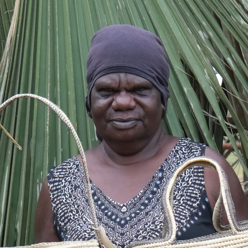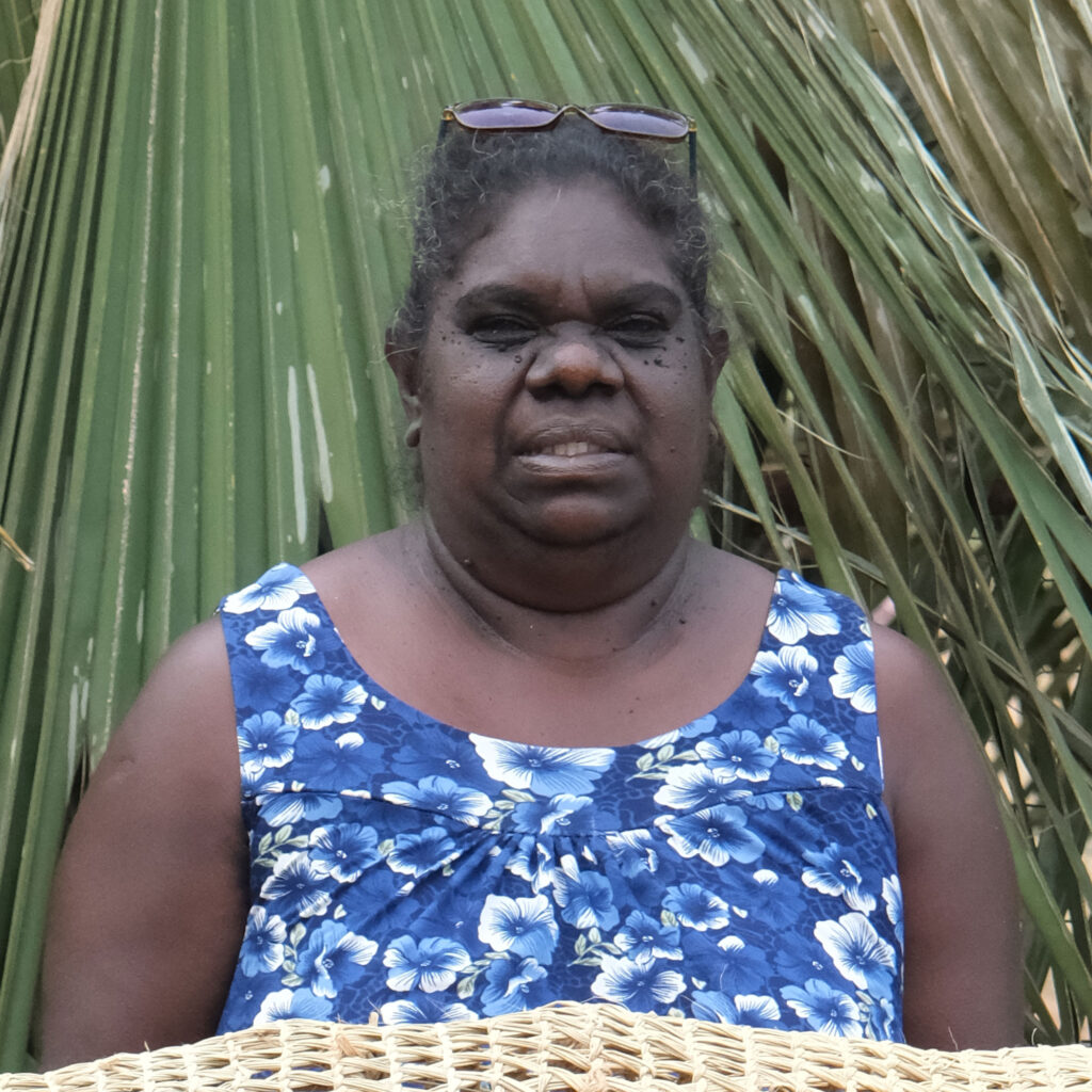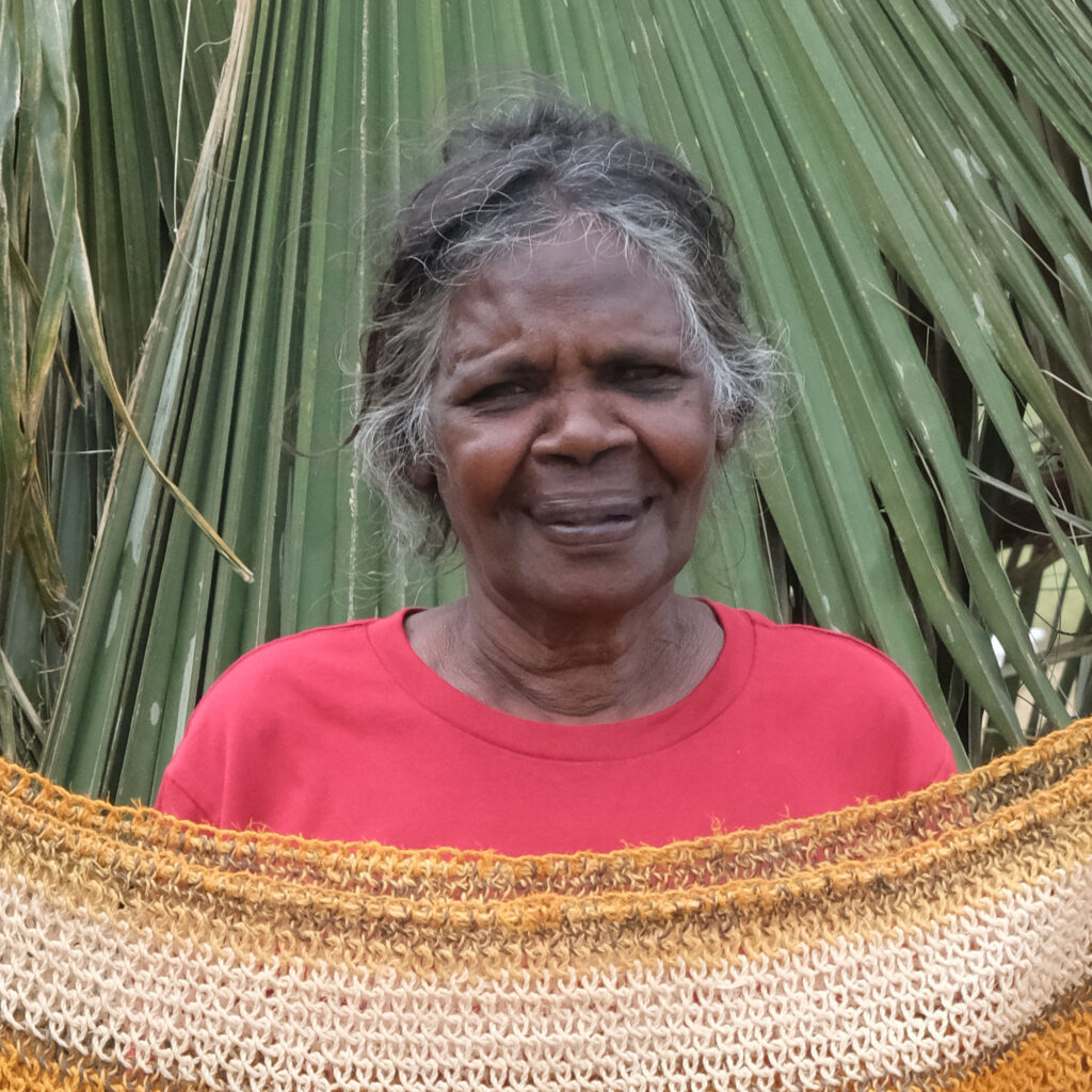 A senior Yolŋu fibre artist from the Ganalbingu clan, Margaret is one of the most respected and established weavers at Bula’bula Arts. She is best known for her ceremonial works made from balgurr (kurrajong bark), gunga (pandanus spiralis) and natural bush string, all carefully harvested, prepared and dyed using methods passed down through generations. Her mastery lies not only in technique, but in her ability to select the right materials and bring them together with balance, strength and beauty.