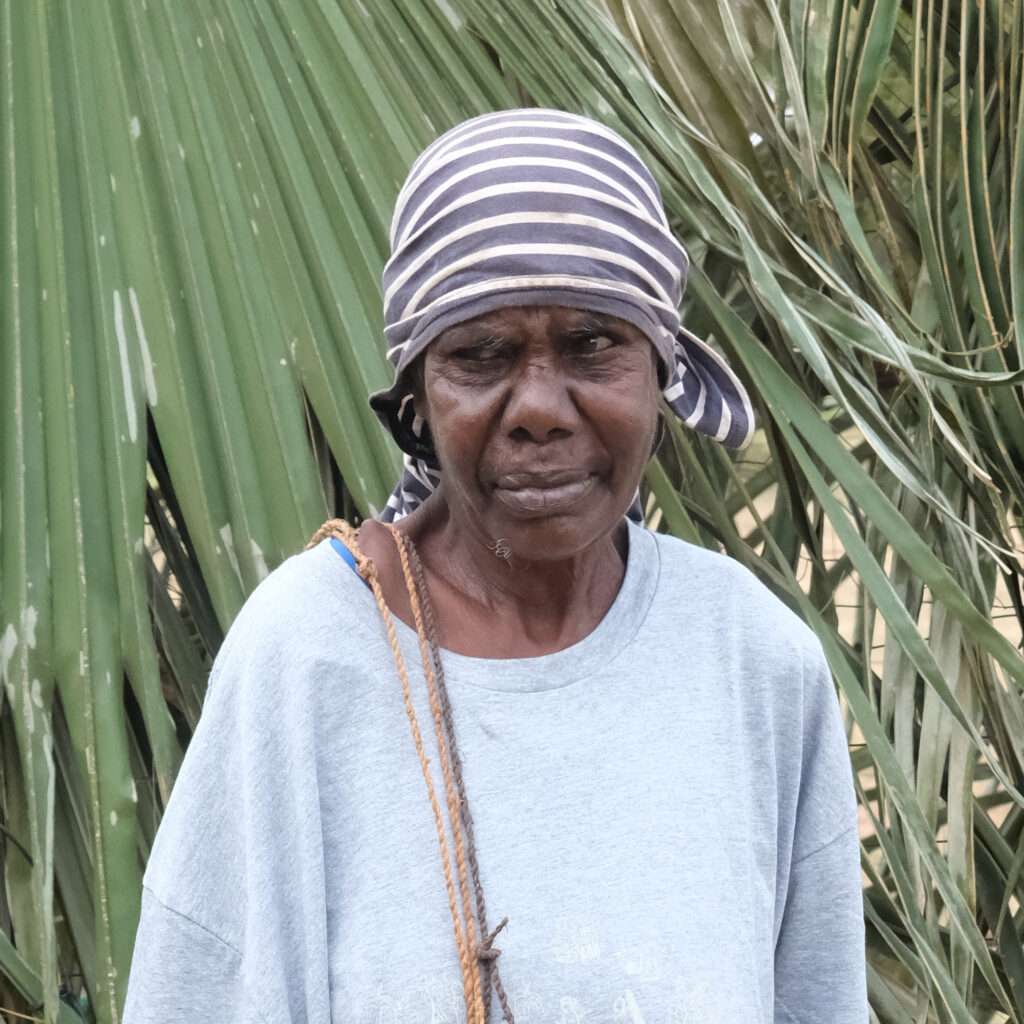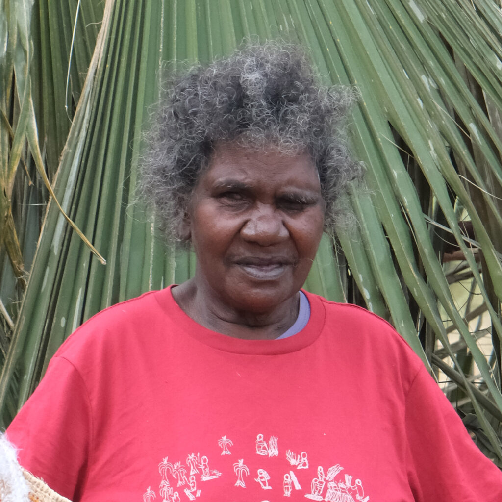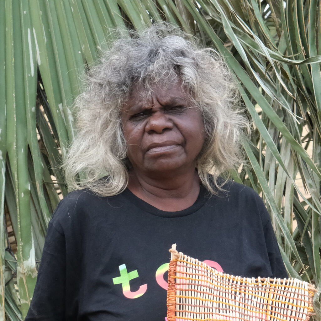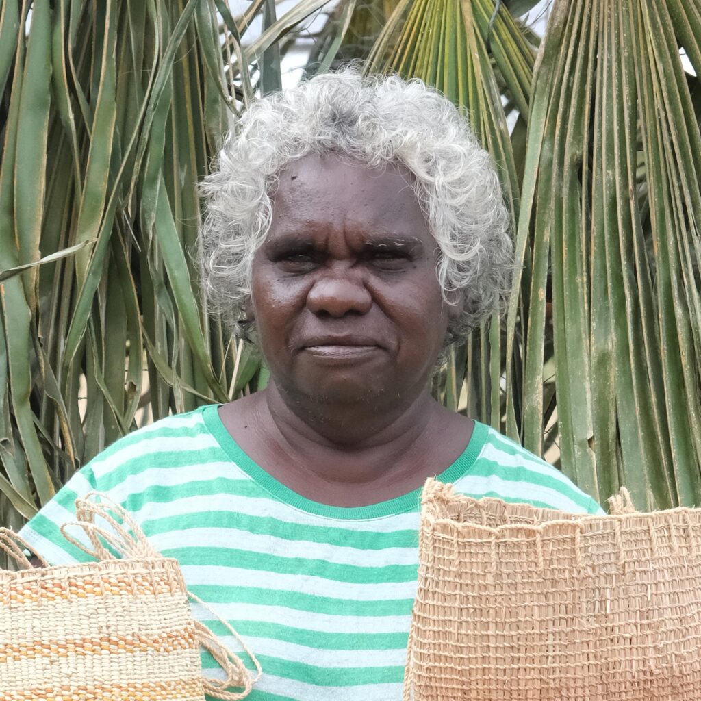 A senior Yolŋu fibre artist from the Ganalbingu clan, Margaret is one of the most respected and established weavers at Bula’bula Arts. She is best known for her ceremonial works made from balgurr (kurrajong bark), gunga (pandanus spiralis) and natural bush string, all carefully harvested, prepared and dyed using methods passed down through generations. Her mastery lies not only in technique, but in her ability to select the right materials and bring them together with balance, strength and beauty.