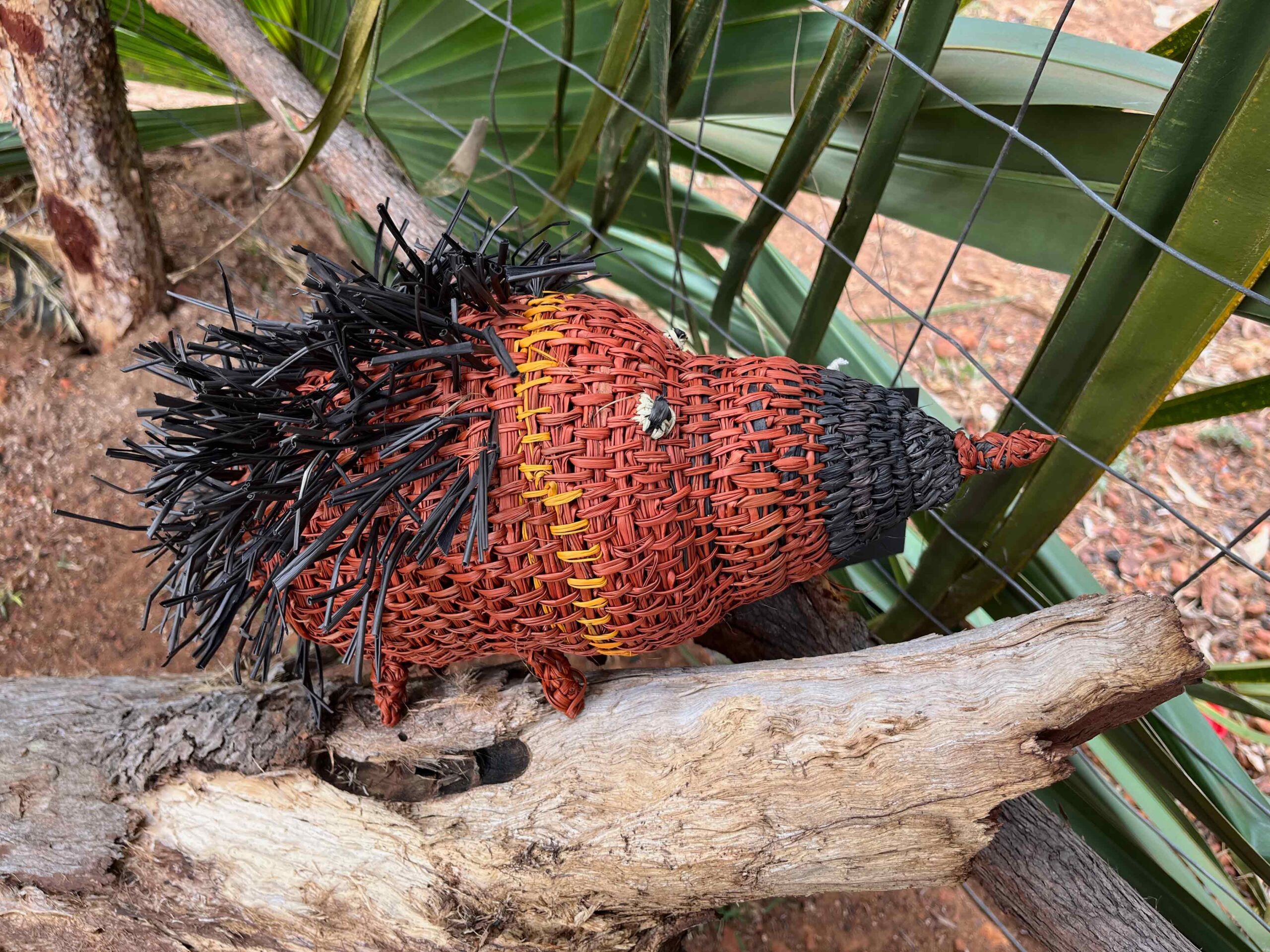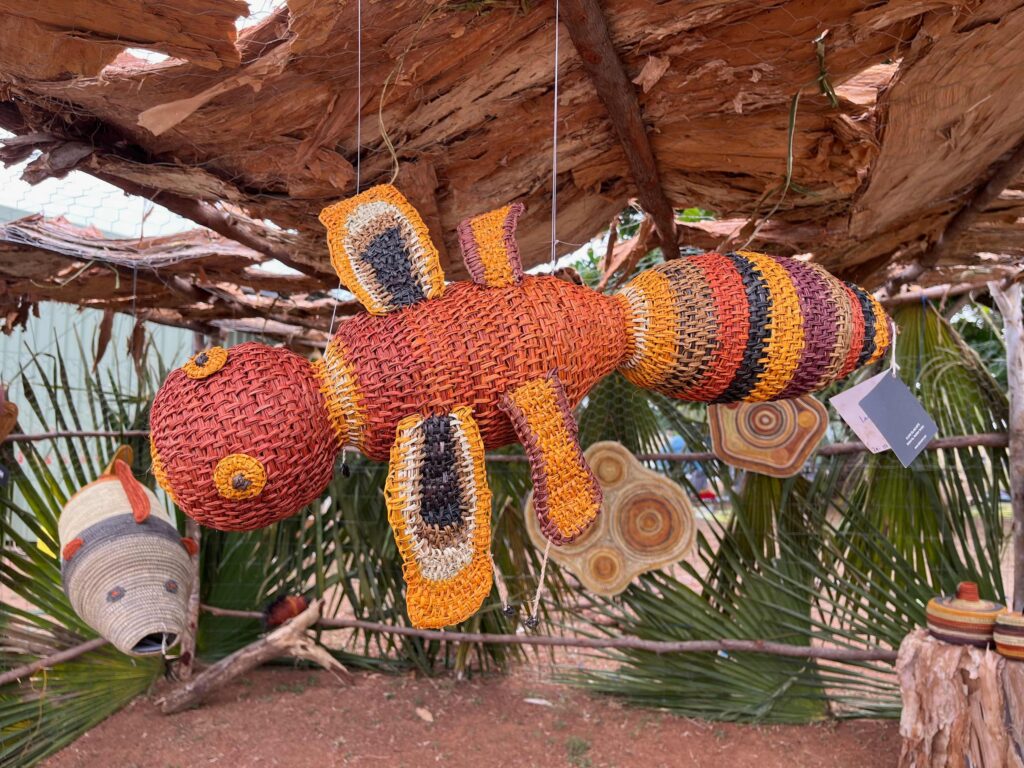 For the Bush Gallery, Judy Manany presented a series of woven animal sculptures, including a dragonfly, echidna, and fish.
