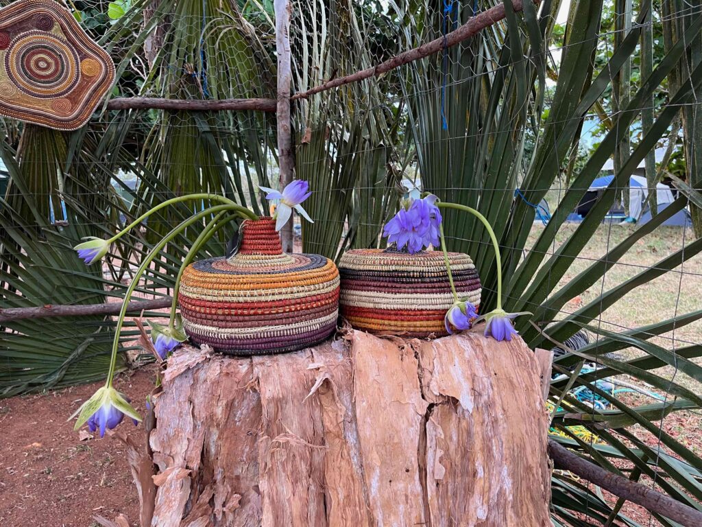 Dhorrpuy’s woven vesssels elegantly held lilly’s that Elizabeth Rukurriwuy collected from a nearby fresh water source.