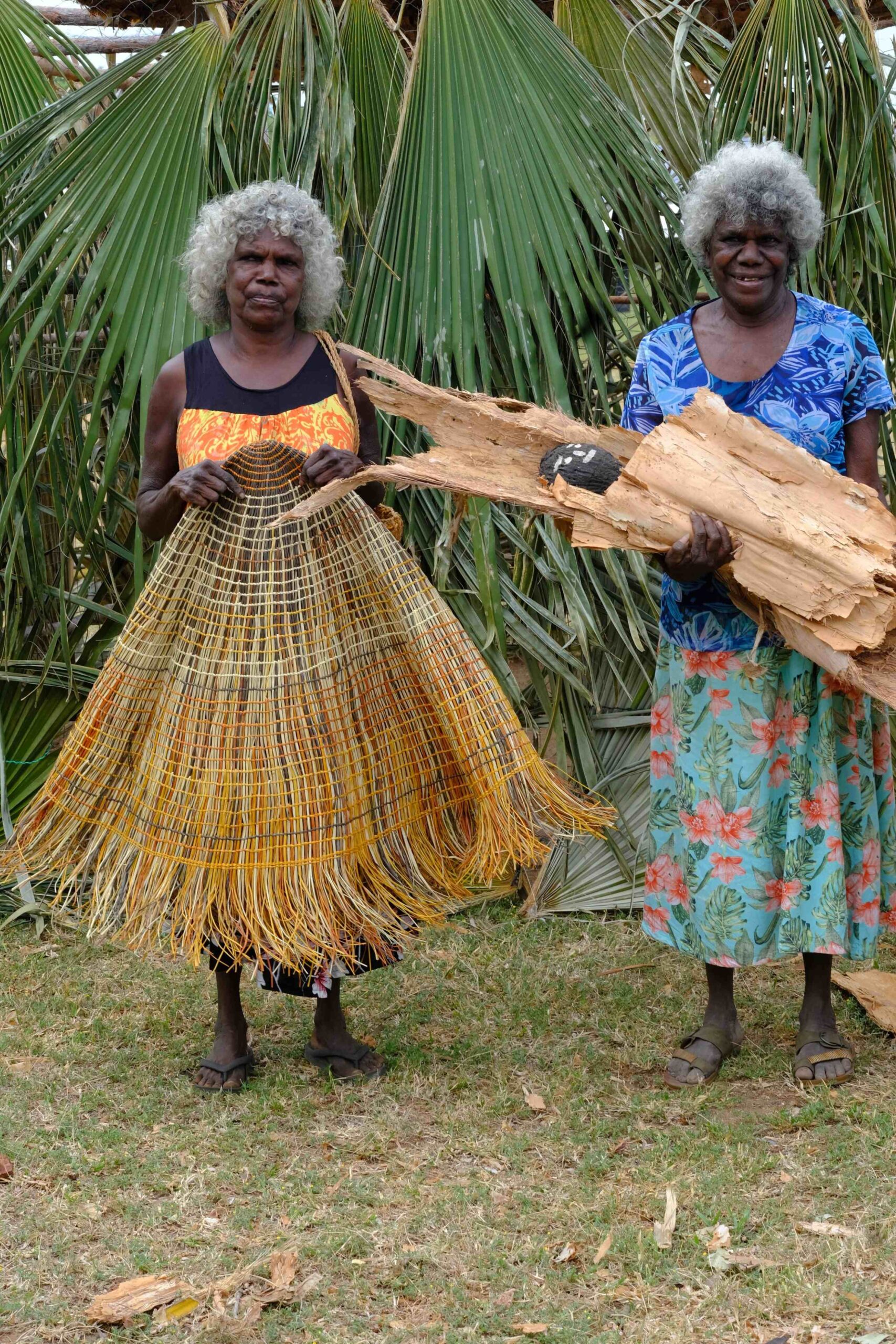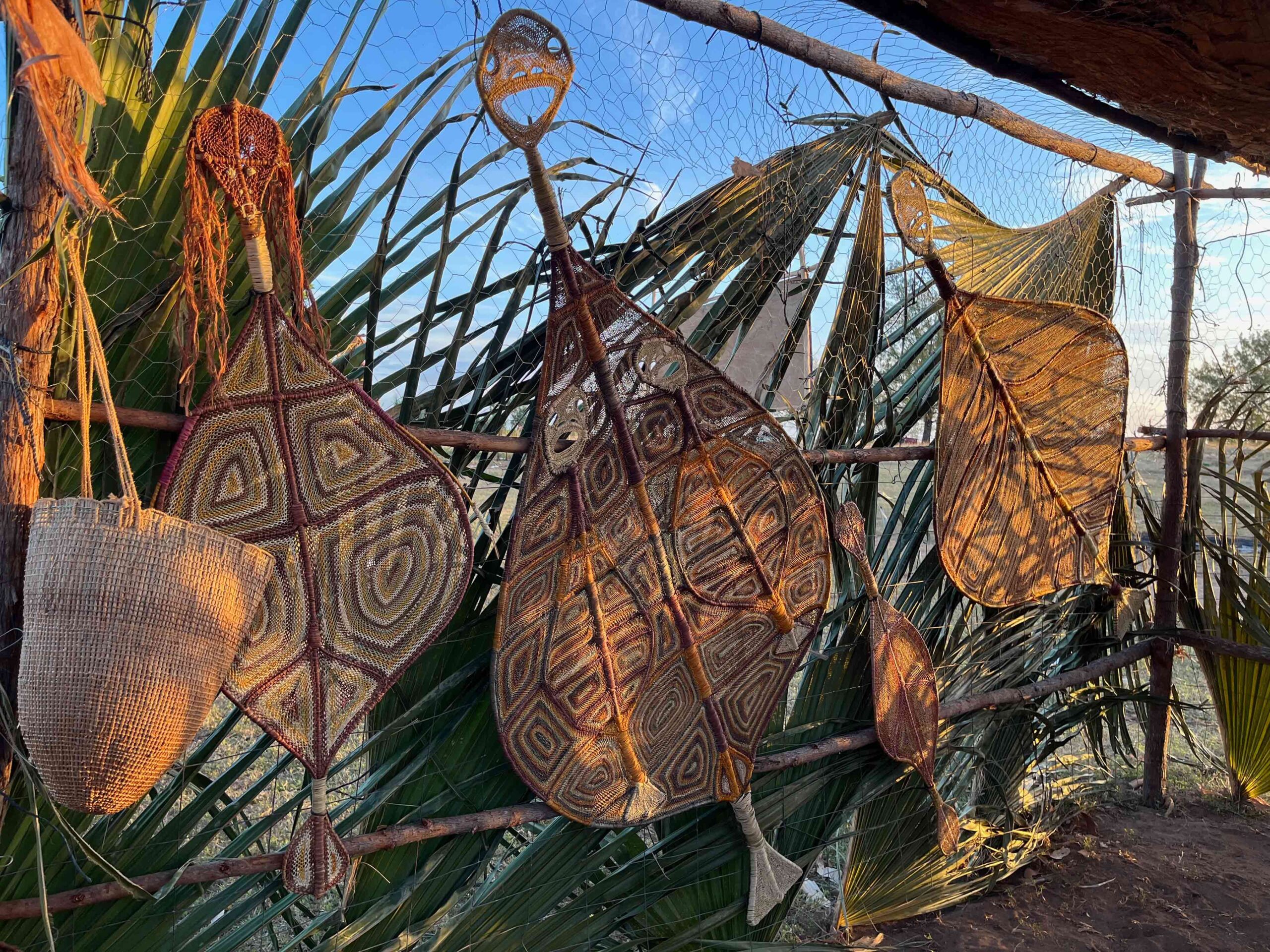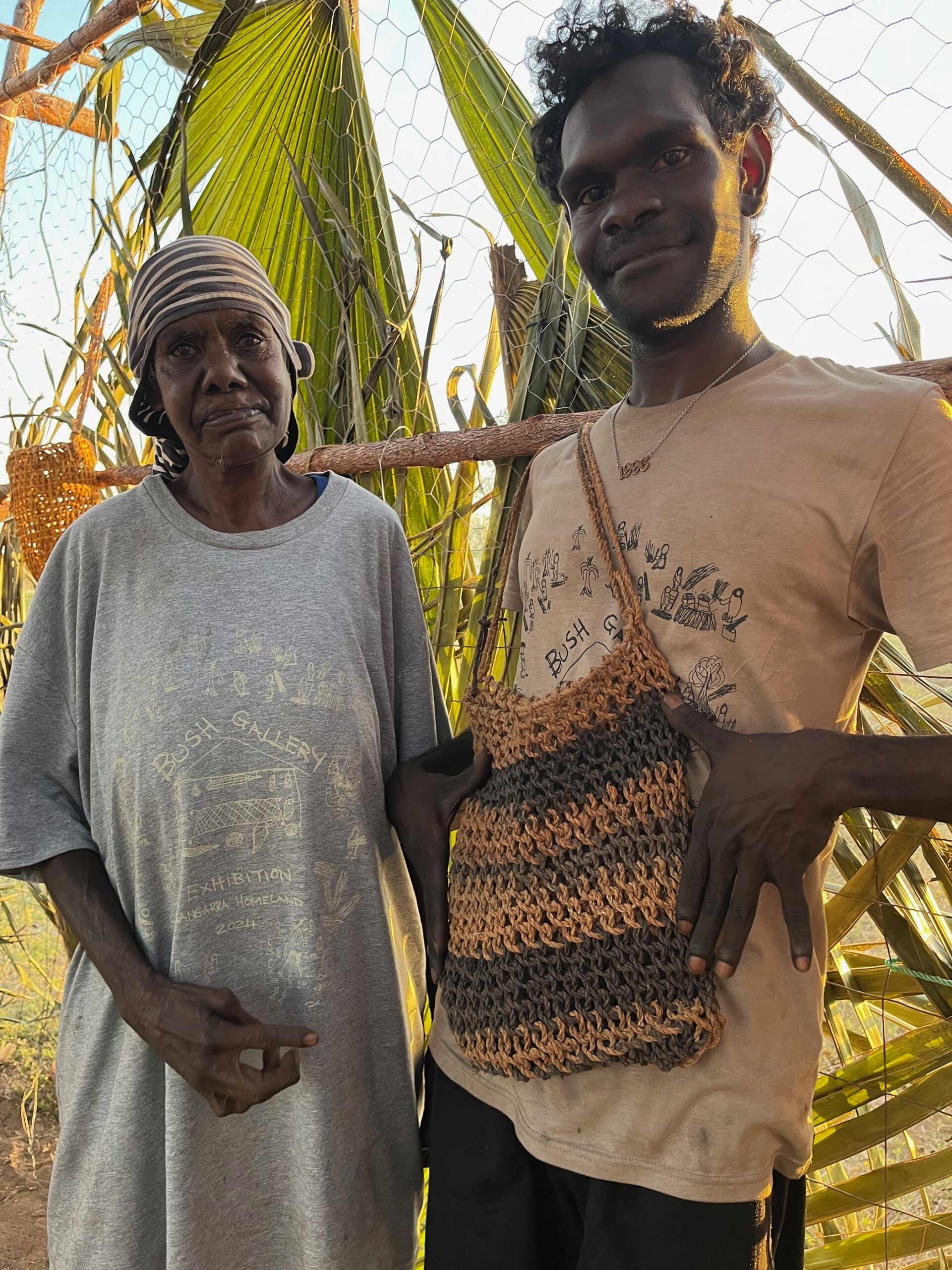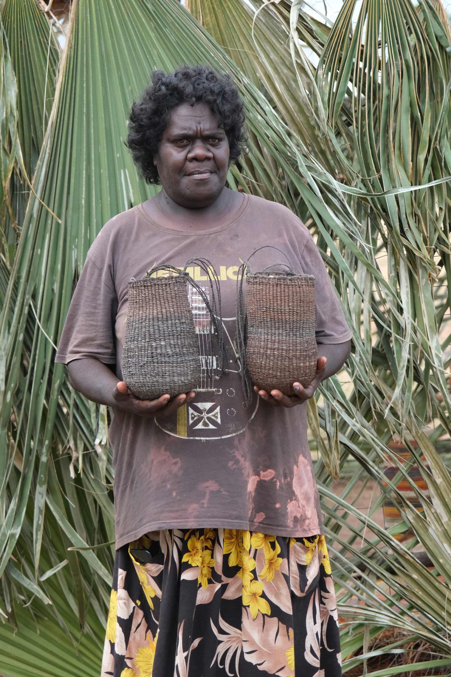 In the Old Days Miṉḏirr (dilly bags) were made for foraging and ceremony, an-gujechiya (fish traps) for hunting, and bamugora (conical mats) for carrying and protection. These practices, made from jungle vine, gunga (pandanus), baḻgurr (kurrajong), and other local fibres, have been passed down through countless generations and remain tied to ancestral law and cultural practice.