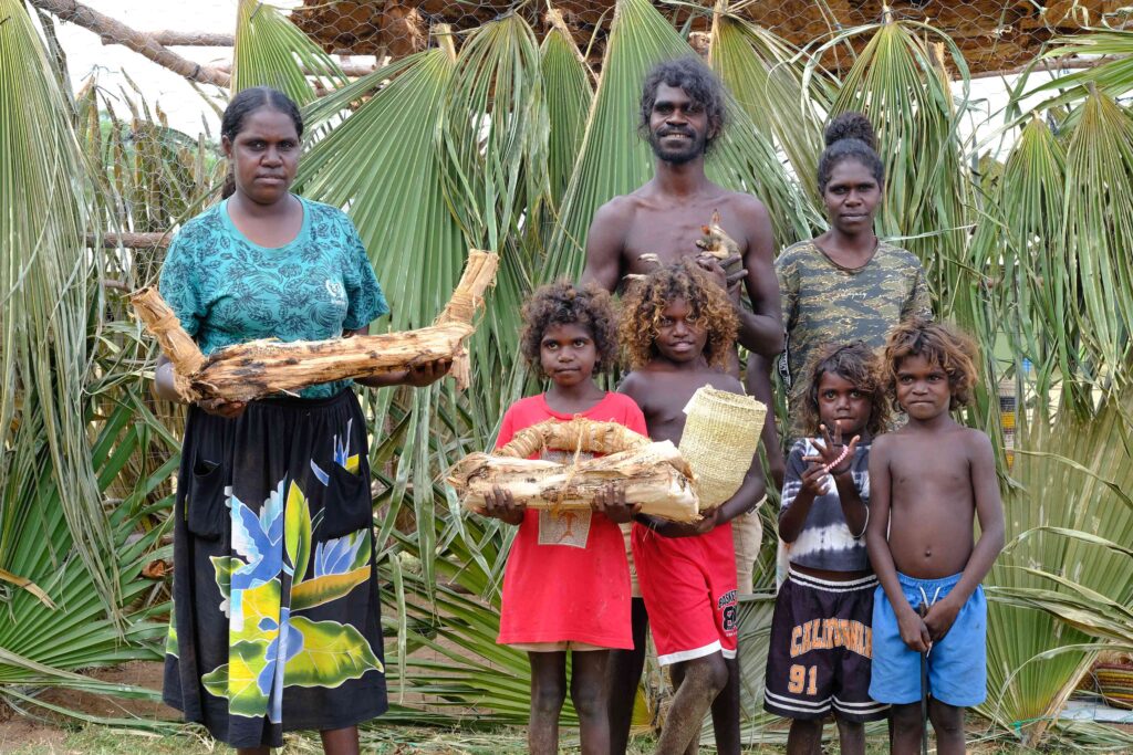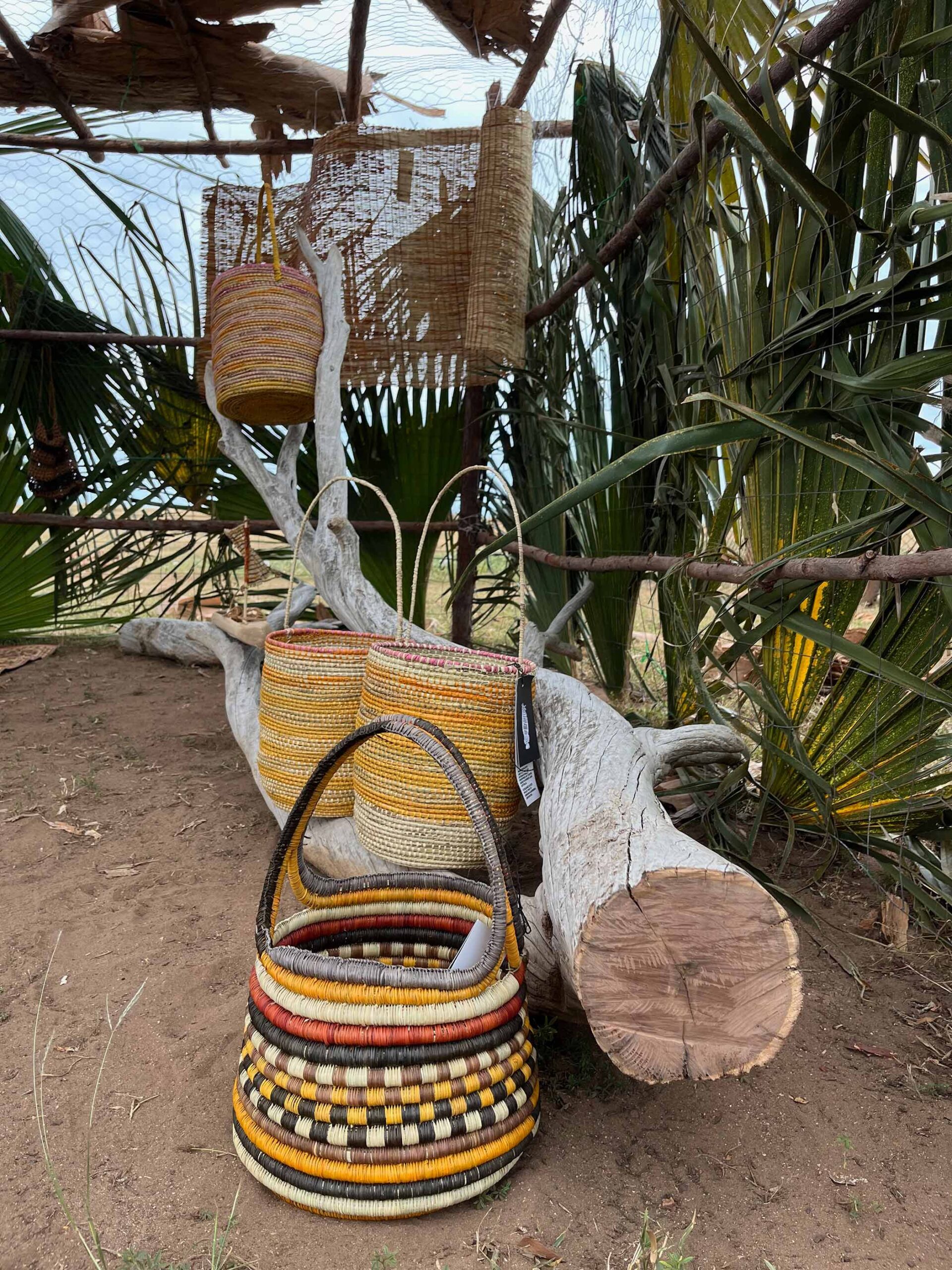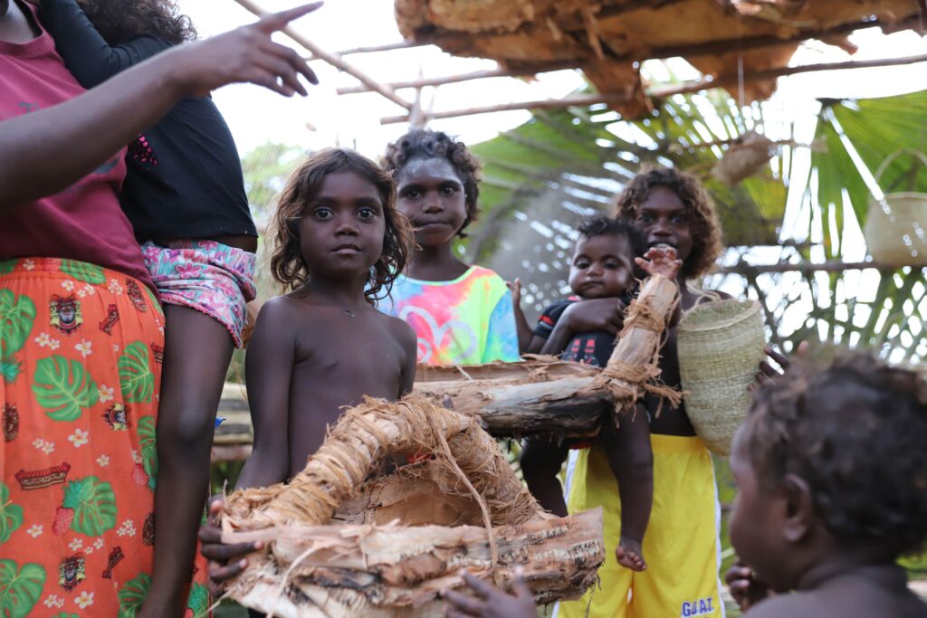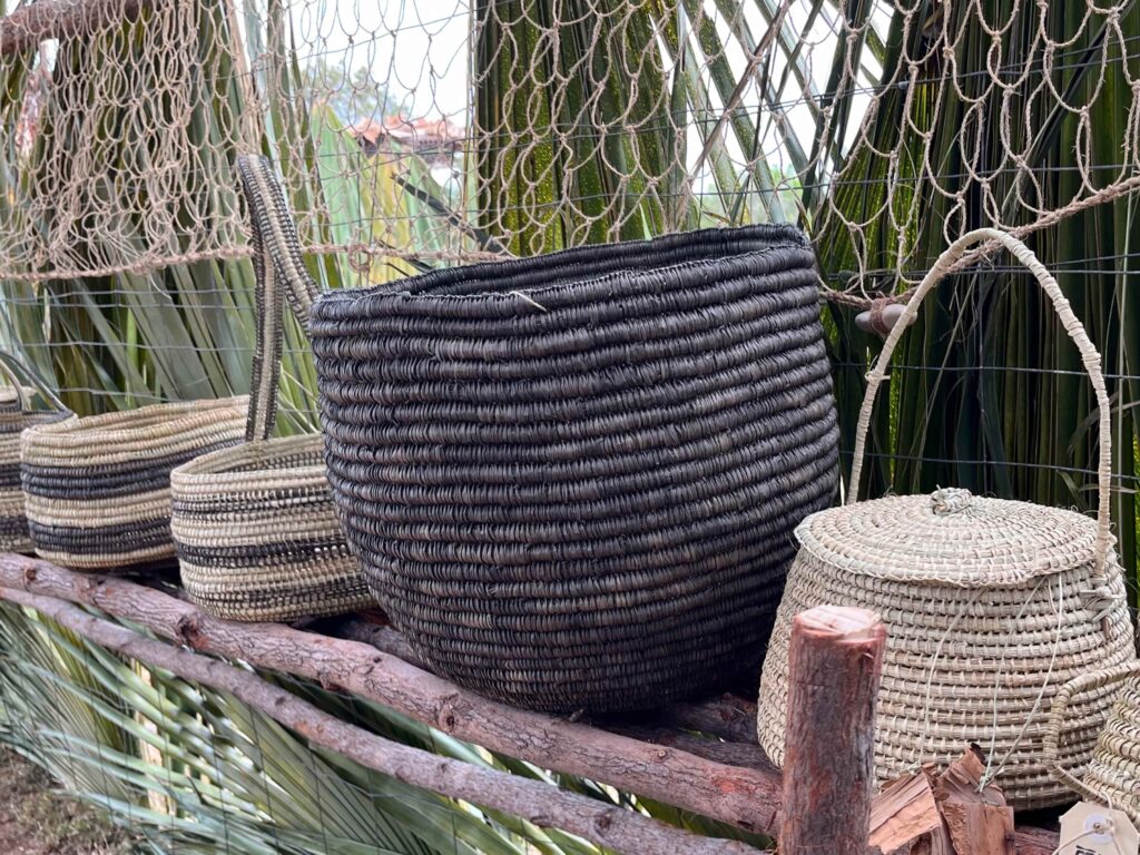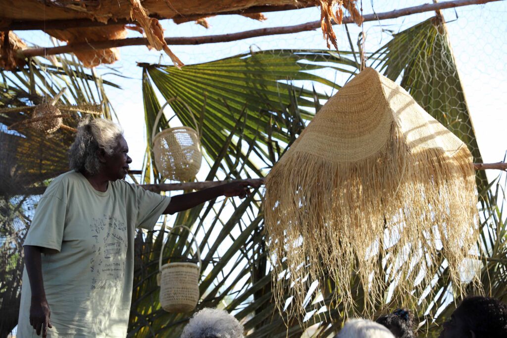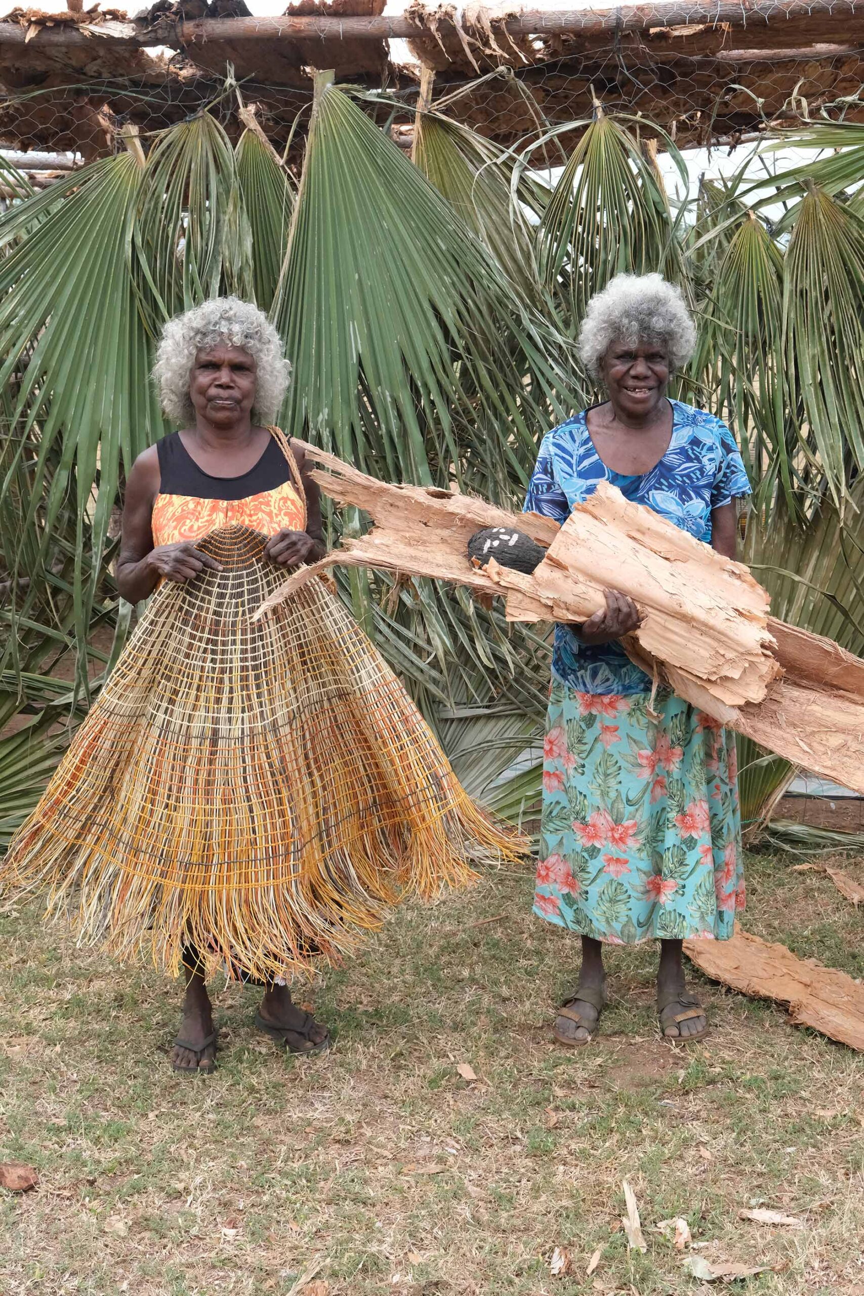 In the Old Days Miṉḏirr (dilly bags) were made for foraging and ceremony, an-gujechiya (fish traps) for hunting, and bamugora (conical mats) for carrying and protection. These practices, made from jungle vine, gunga (pandanus), baḻgurr (kurrajong), and other local fibres, have been passed down through countless generations and remain tied to ancestral law and cultural practice.