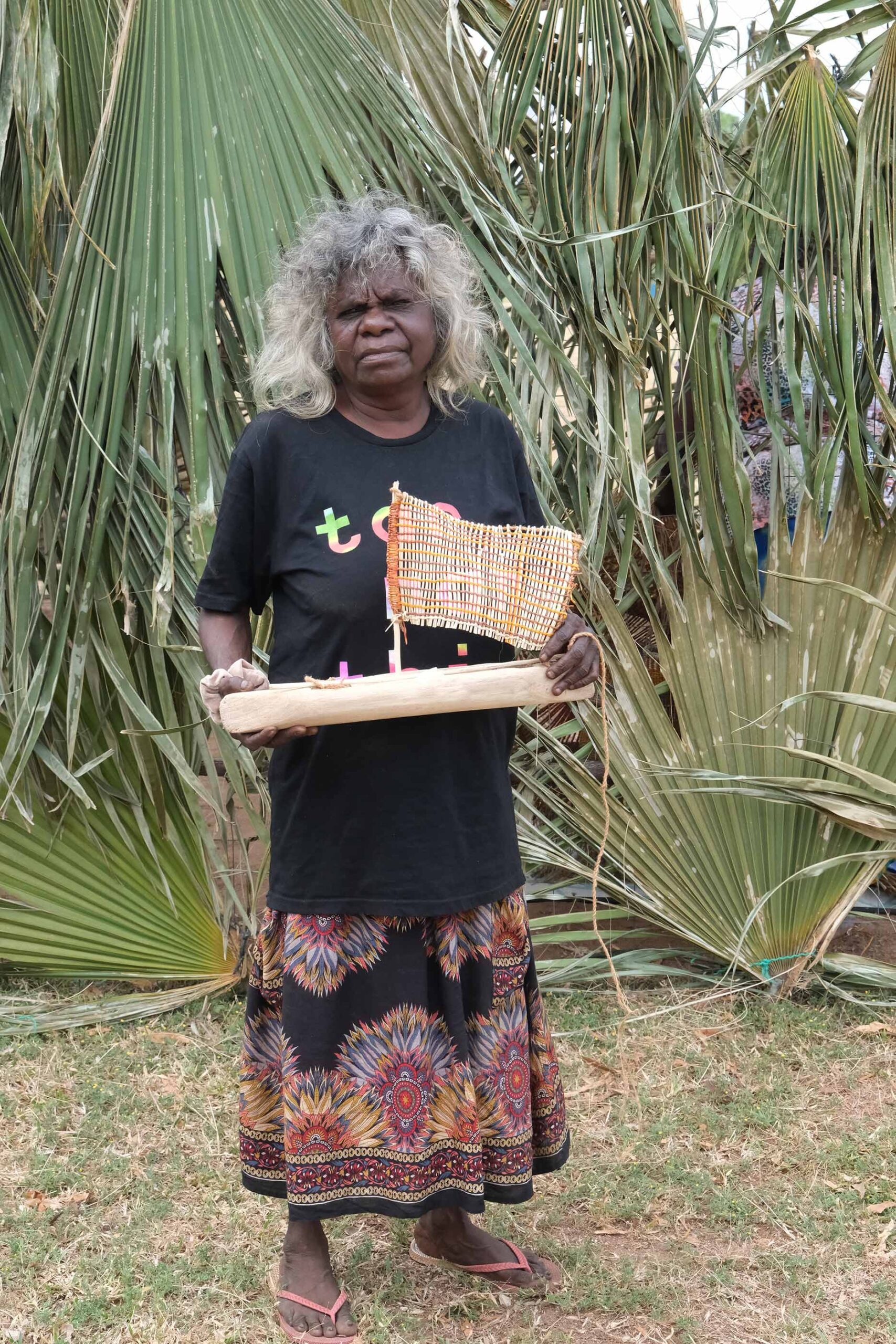 She is the Traditional Owner of the fish trap and confers approval to those artists who seek to produce these objects or depict the motif in their paintings.