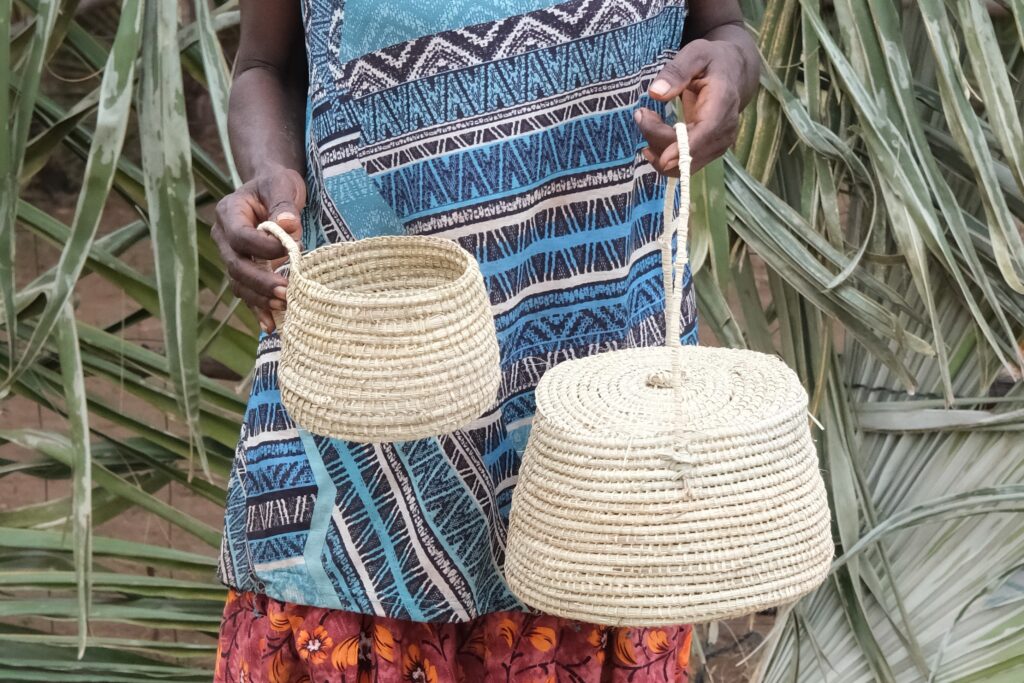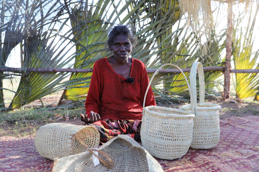 Roslyn Malngumba made ribbed dilly bags and a mat using a new technique that involved wrapping pandanus.