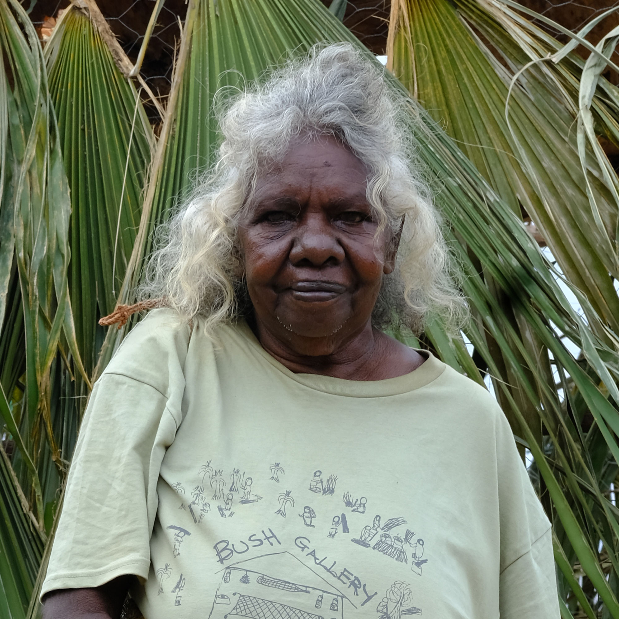 During the inaugural Bush Gallery, Lily Roy’s cultural leadership and extensive knowledge of languages, history, and Yolŋu culture saw her take on an important role supporting less confident artists. She acted as a cultural interpreter, particularly for artists from Maningrida and Milingimbi, helping to strengthen connections and ensure shared understanding.