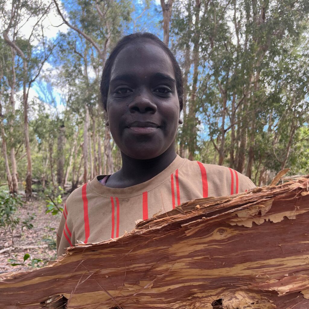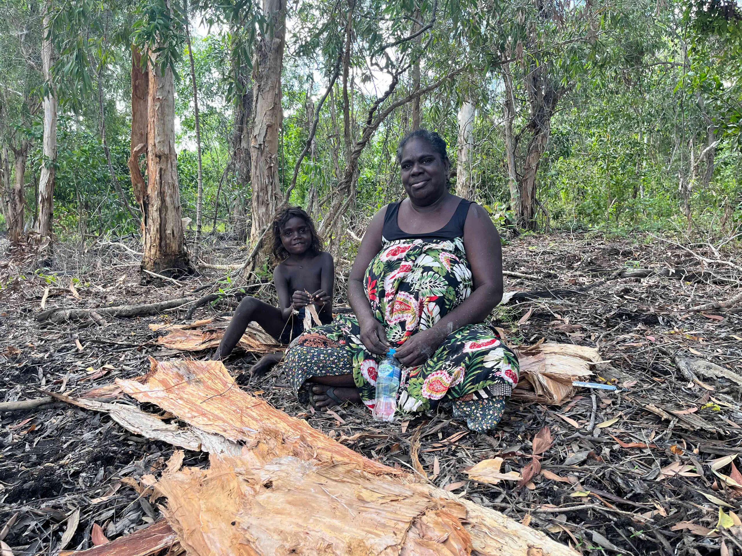 Selina came to the weaving camp to support her mother Julie and her aunt Daphne, offering another pair of hands while learning alongside them. Being present on Country and working closely with her family allowed Selina to begin building her own weaving skills through observation, practice and shared time. Her participation was important to senior weavers Margaret Malibirr, Daphne Banyawarra and Julie Djulibing, who value the passing on of knowledge through generations. For them, Selina’s involvement represents continuity, care and the future of weaving traditions, where learning happens by doing, listening and being present with family and elders.