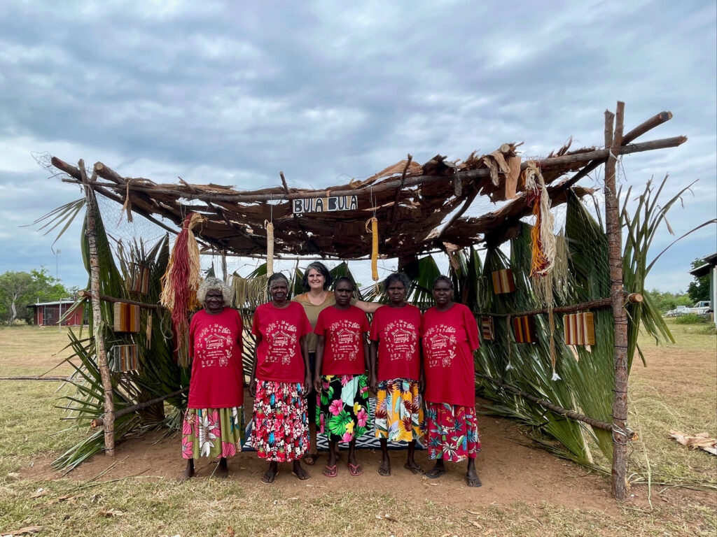 Together with fellow Milingimbi Art and Culture artists Gwen Warmbirrirr helped to conceptualise the collaborative artwork created as part of the Laŋarra Bush Gallery.